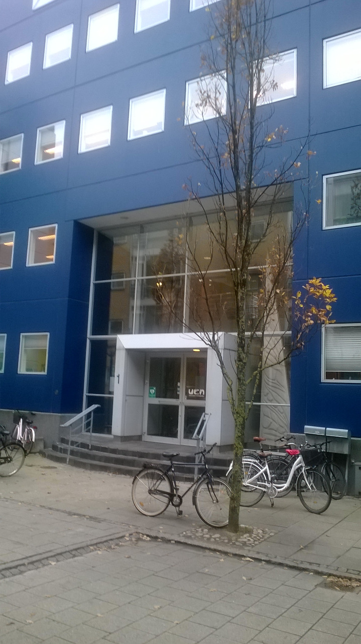 Jedná se o 4 podlažní budovu plnou učeben a samozřejmě nezbytného vybavení jako studijní oddělení a menza. Menza samotná stojí za zmínku. Styl stravování je zde diametrálně odlišný, nejen že se tu jí obecně zdravěji i celková koncepce je jiná. Pokrmy si člověk sám nandá a následně zváží a zaplatí. Cena za 100 g je 8 dkk. K výběru je mnoho druhů zeleniny, salátů, ale i teplých pokrmů. Do 10:00 je možno zakoupit snídani, kde je nabízeno především pečivo, müsly nebo ovesná kaše. Speciálním a pro mě velice významným dnem je pátek. Proč? V pátek je brunch! Takže od párečků, vajíček, paštiček po sladké taštičky, croissanty, atd. … pátky tu mam vážně rád!